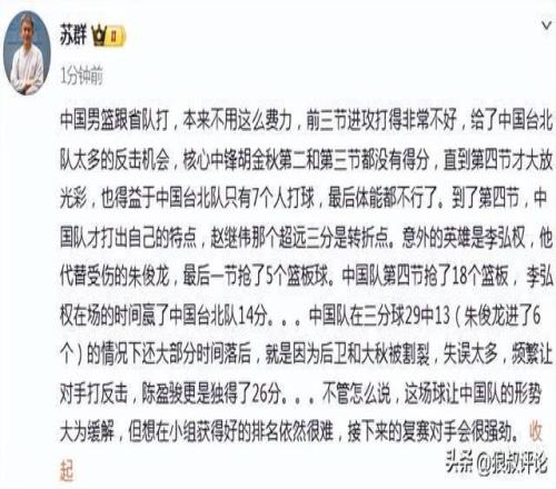 媒體人蘇群發(fā)文點(diǎn)評(píng):