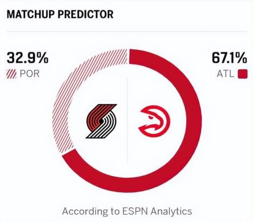 老鷹近期連勝的對手為籃網(wǎng)、奇才,整體實(shí)力偏弱,連勝含金量相對有限;開拓者狀態(tài)同樣起伏不定,兩隊(duì)近期表現(xiàn)與競技狀態(tài)差距不大。綜合來看,老鷹略占優(yōu)勢,且此役是開拓者連續(xù)客場第三戰(zhàn),還將面臨背靠背作戰(zhàn),體能消耗較大!ESPN預(yù)測本場比賽,老鷹勝率67.1%,開拓者勝率32.9%。