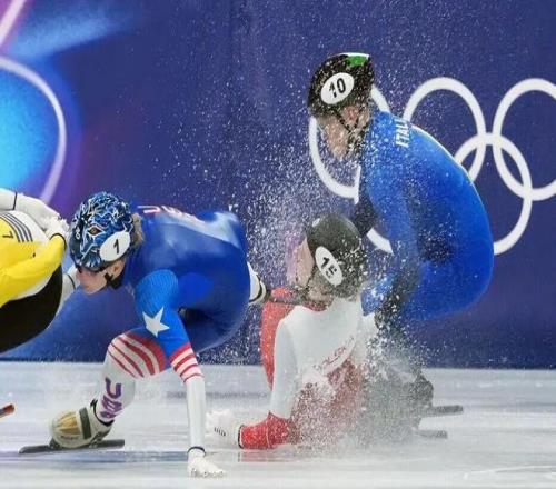 那是女子1500米四分之一決賽,短道速滑本來就險,選手貼著冰面飛??斓浇K點時,美國選手桑托斯-格里斯沃爾德一個動作引發(fā)連環(huán)撞,包括意大利名將豐塔納在內的好幾個人摔成一團。