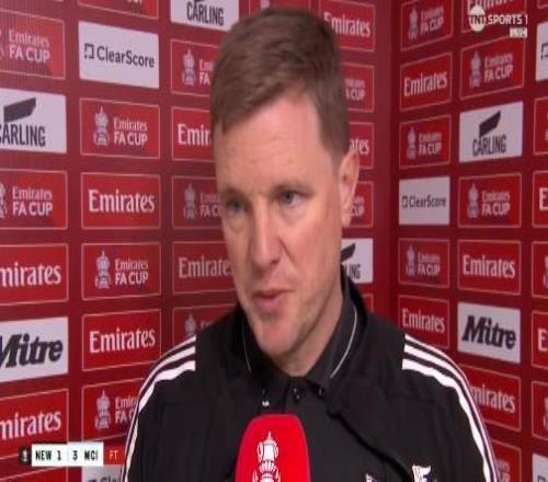 足總杯1/8決賽,紐卡主場(chǎng)1-3輸給曼城,紐卡主帥埃迪-豪賽后接受了TNT體育的采訪。