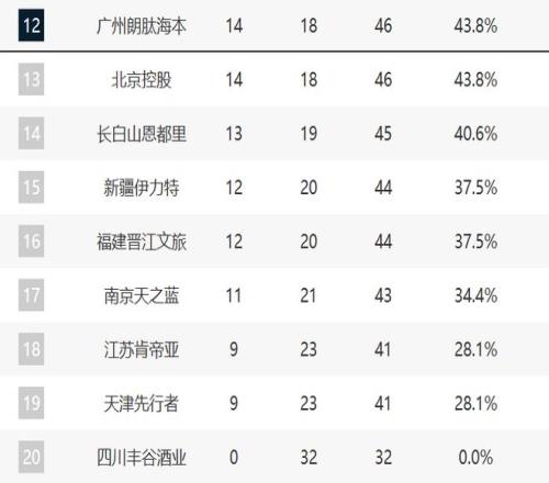 至于江蘇、天津這輪也都輸球了,他們落后第12還有5個(gè)勝場(chǎng),基本上沒(méi)什么希望了。四川則是32連敗了。