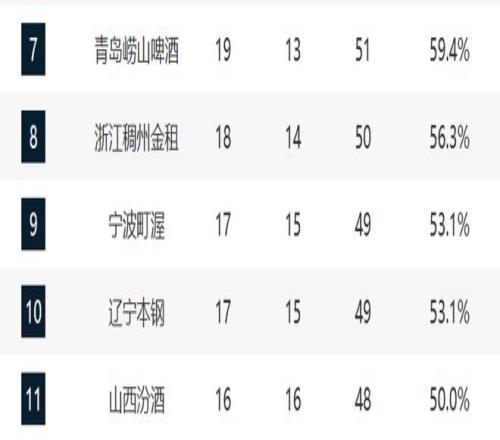 青島和浙江排在第七和第八,他們這輪全部都取勝了,他們的排名沒(méi)有動(dòng)。而這兩支球隊(duì)最近10場(chǎng)的戰(zhàn)績(jī)都是6勝4負(fù),不過(guò)他們目前的排名處于不上不下,基本上就這樣了。